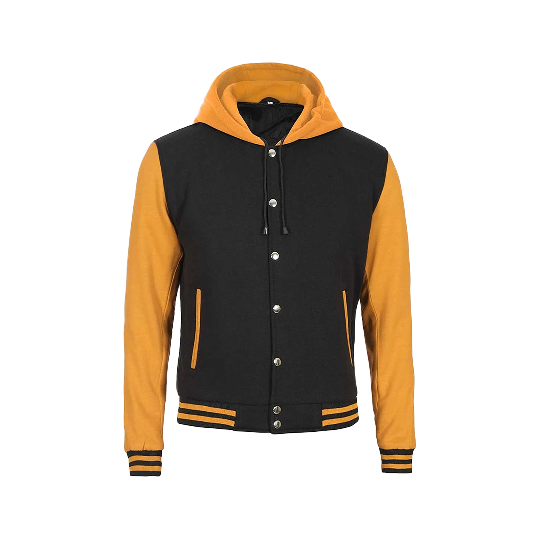 Make a bold statement with this eye-catching yellow and black varsity jacket, blending classic collegiate style with modern streetwear elements. The vibrant color contrast and cozy fleece construction make it perfect for casual outings, game days, or adding sporty flair to your wardrobe.