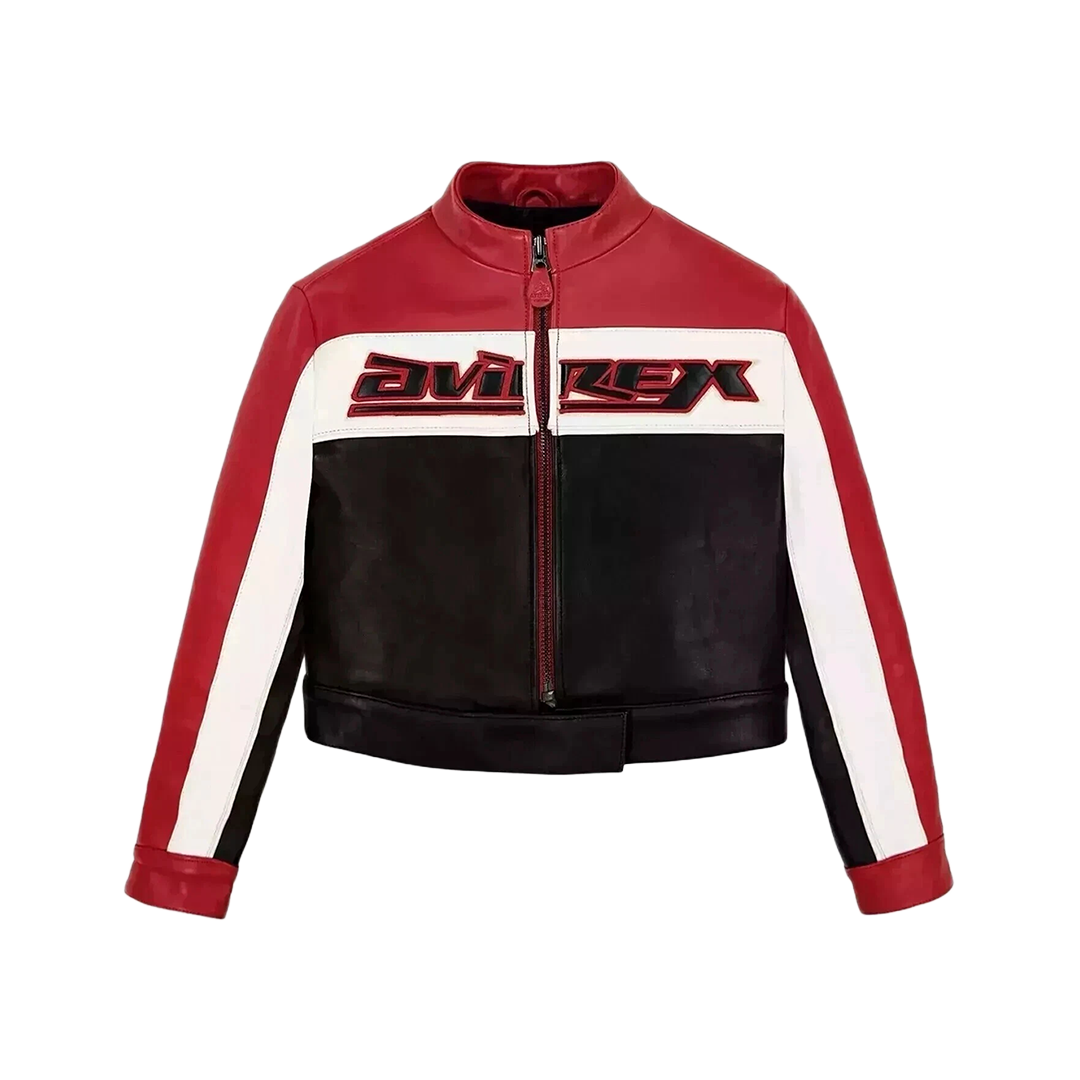 Unleash your inner rebel with this Avirex Cropped Moto Racing Leather Jacket, designed to merge retro motorsport heritage with a bold, fashion-forward edge. With its cropped fit and vibrant color-block styling, this jacket is built for women who ride with confidence—on the street or in style.