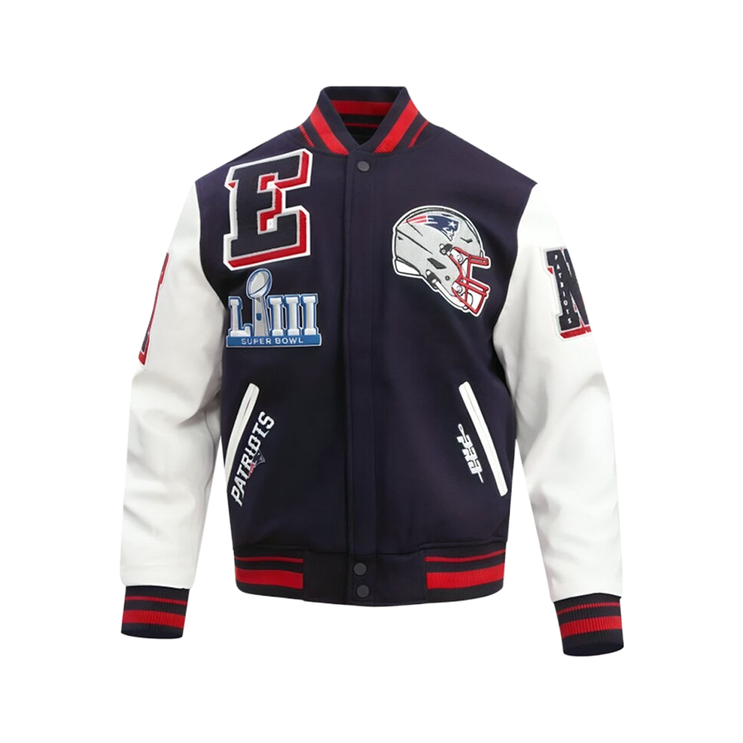 Bold and game-ready, this New England Patriots mashup varsity jacket blends classic varsity style with team pride. Perfect for cool days and loyal fans.