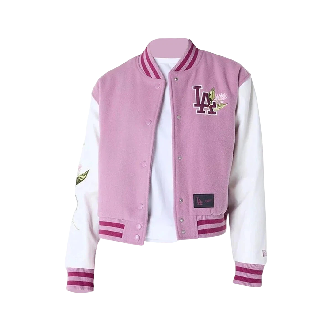 Celebrate your team spirit in style with the New Era Women’s Varsity College Jacket in a bold pink and white Lakers colorway. Crafted with premium materials and classic varsity charm, this mid-length jacket is the perfect blend of sporty elegance and street-ready fashion for any Lakers fan.