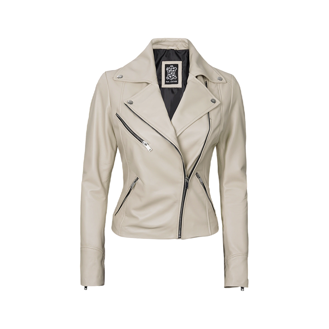 Define your personal style with this sleek and functional women's beige leather biker jacket — a must-have outerwear piece built for both comfort and confidence.
