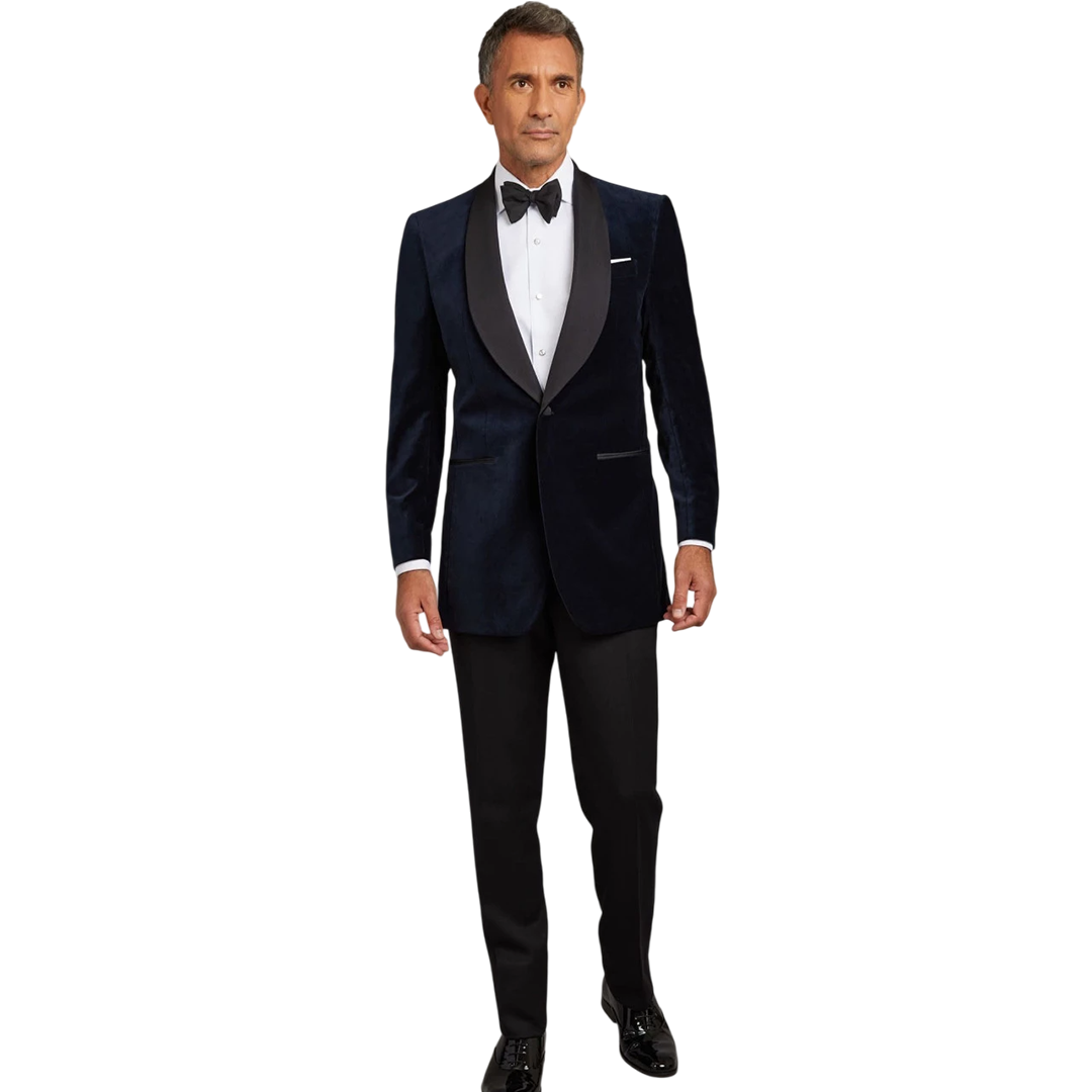 Command every black-tie affair in this breathtaking blue velvet masterpiece, where the richness of royal velvet meets the fluid elegance of a satin shawl collar. Designed for gentlemen who demand both luxury and distinction, this tuxedo transforms special occasions into unforgettable style statements.