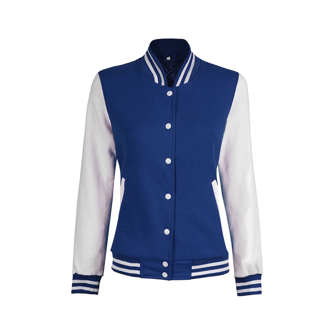 Level up your style with our Women's Royal Blue and White Varsity Jacket, a fashion-forward and enduring inclusion in your wardrobe. Meticulously fashioned from top-tier materials, this jacket guarantees a perfect blend of comfort and robustness. Whether you're a sports aficionado or just seeking a chic and sporty outerwear option, this jacket is the ultimate selection.