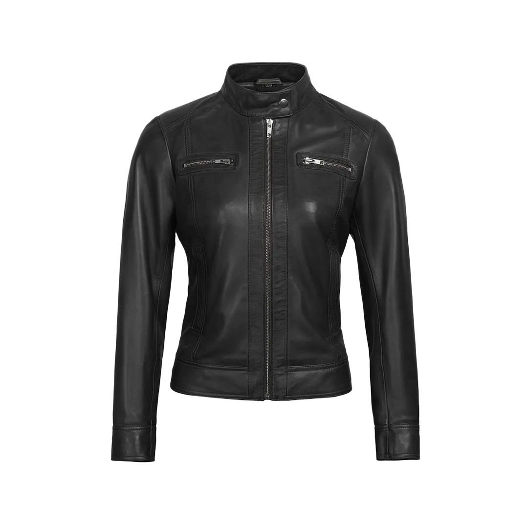 The Shelia Women’s Black Cafe Racer Leather Jacket delivers a bold yet polished edge to your everyday look. With clean lines and a fitted cut, it brings moto-inspired styling to modern fashion.