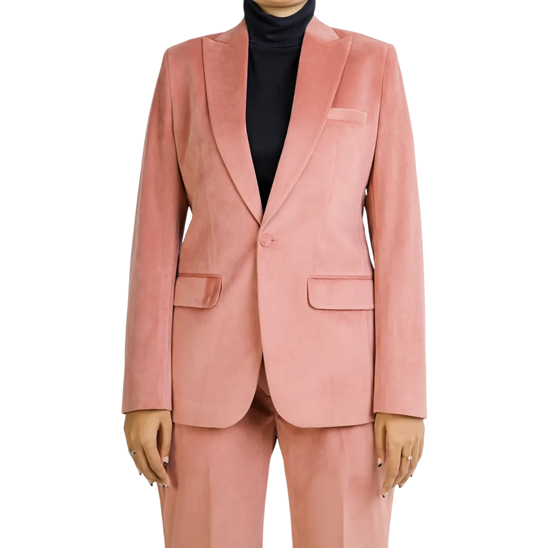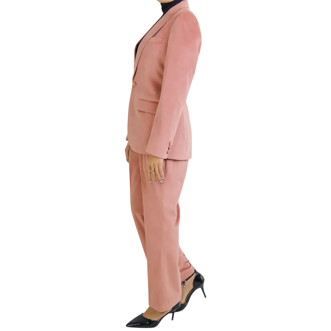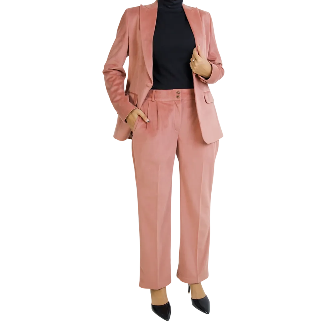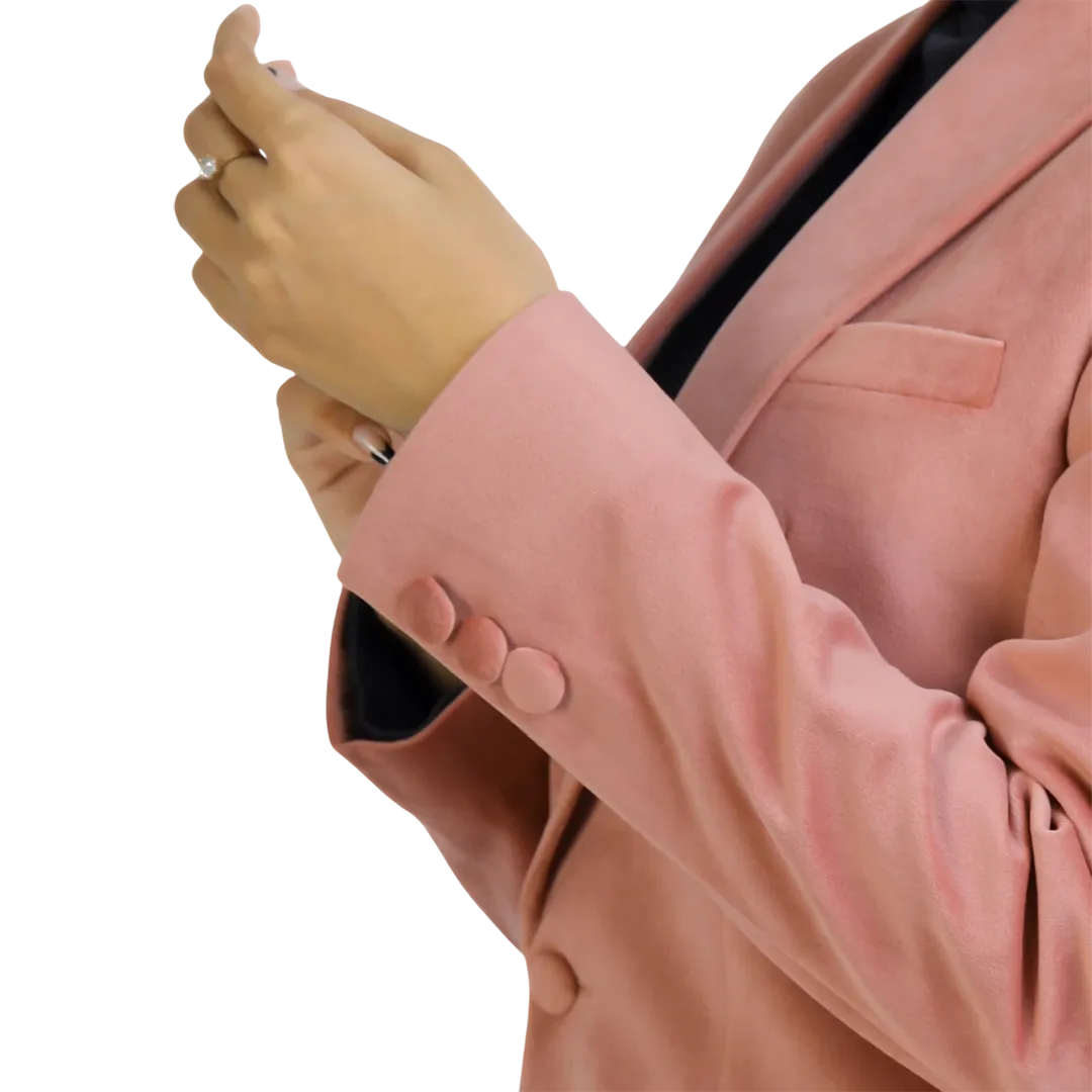 Indulge in refined sophistication with this sumptuous rose pink velvet suit, where opulent texture meets contemporary tailoring. The rich velvet fabric elevates this ensemble beyond ordinary suiting, making it perfect for special occasions when you want to stand out with quiet luxury.