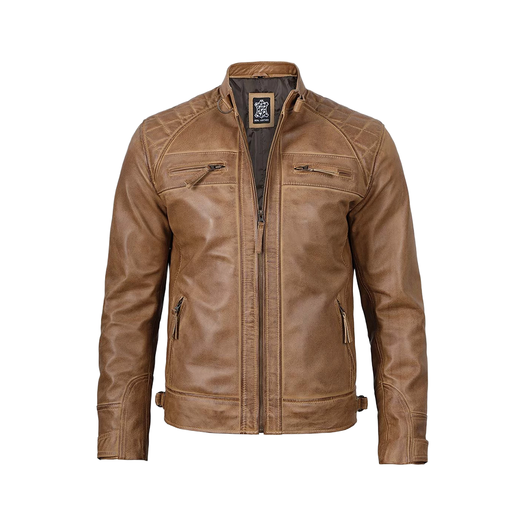 Channel vintage motorcycle style with this rugged leather jacket designed for taller men (6'0" - 6'4"). Crafted from 100% genuine distressed lambskin leather, this cafe racer combines timeless design with modern comfort.