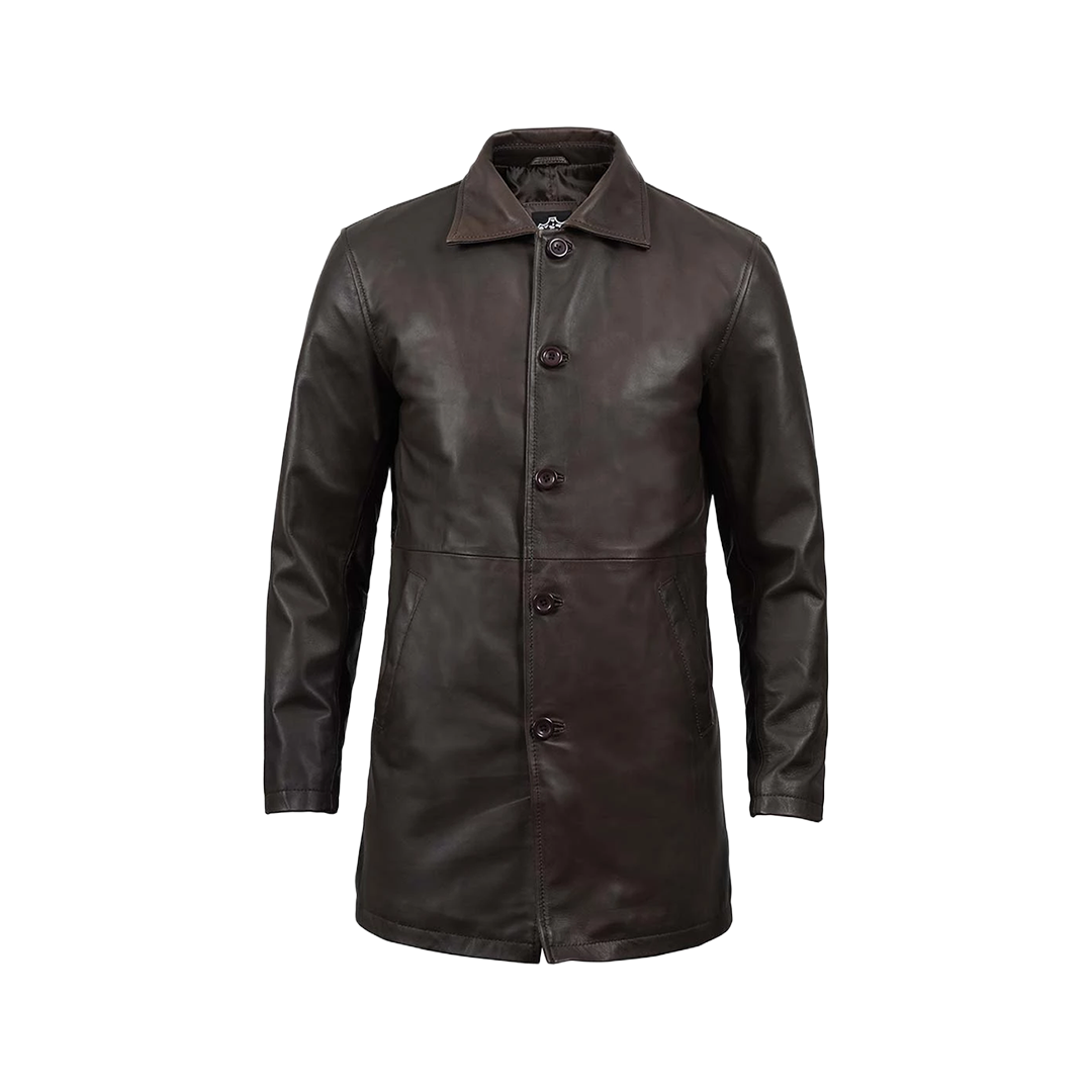Elevate your winter wardrobe with this vintage-inspired leather coat designed for taller men (6'0" - 6'4"). Crafted from 100% genuine distressed lambskin leather, this car coat combines rugged charm with modern functionality.