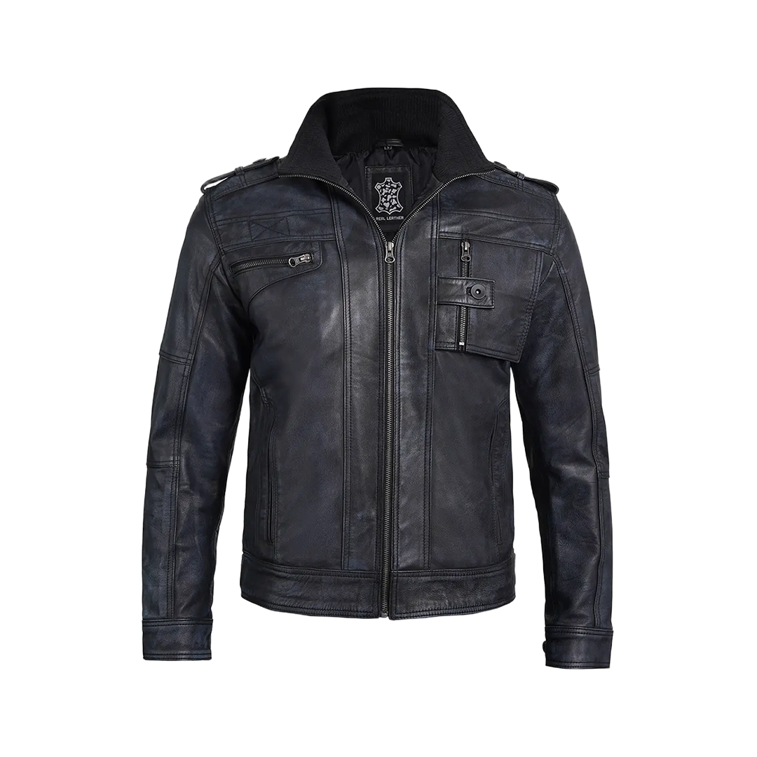 Command attention with this rugged yet refined biker jacket. Expertly crafted from 100% genuine waxed lambskin leather, this jacket delivers authentic motorcycle heritage with a perfectly broken-in feel from day one.