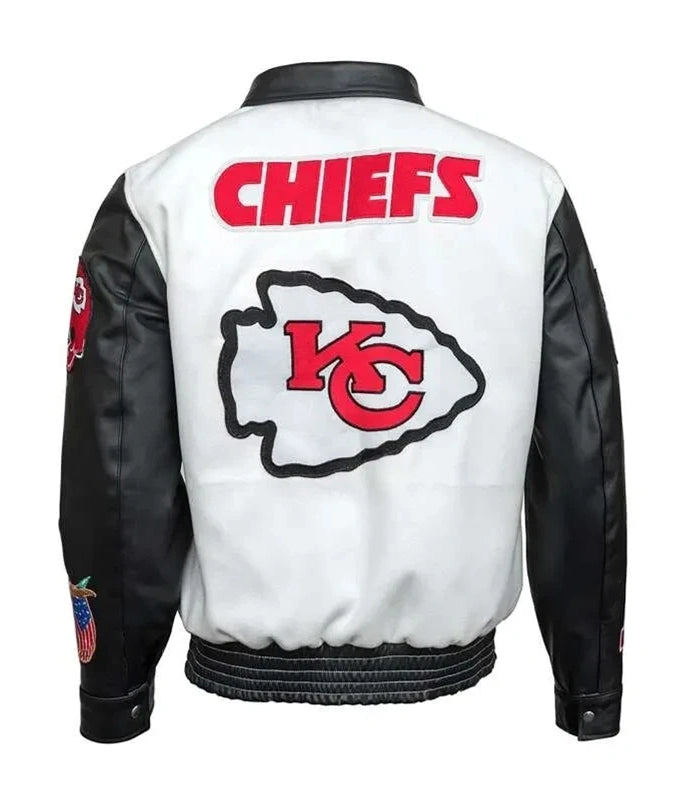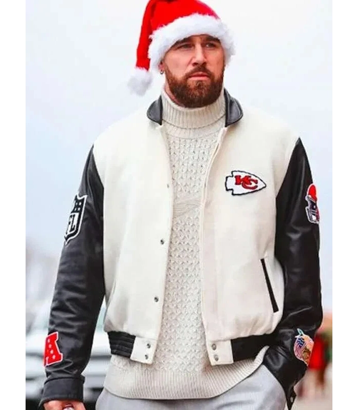 Step into the spotlight with the Travis Kelce Black and White Varsity Jacket, a bold fusion of athletic legacy and fashion-forward flair. Inspired by the Kansas City Chiefs’ star tight end and style icon, this jacket captures the essence of modern sportswear with a nod to classic varsity tradition.