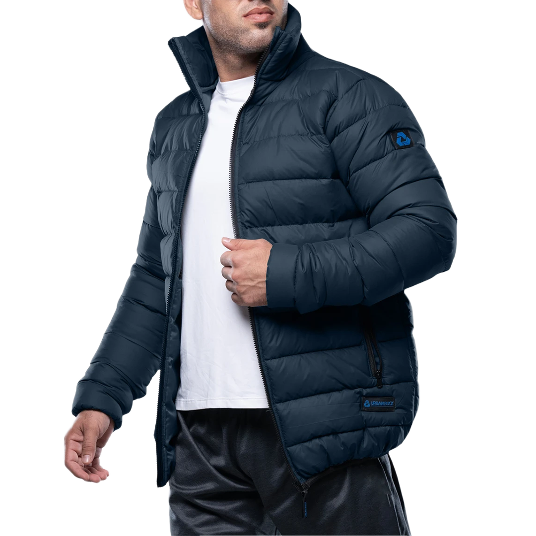 Redefine winter versatility with this sleek navy puffer, expertly engineered for temperatures from 14°F to 5°F (-10°C to -15°C). Its 3/4 length design combines urban sophistication with technical performance, featuring innovative backpack-strap functionality for the modern commuter.