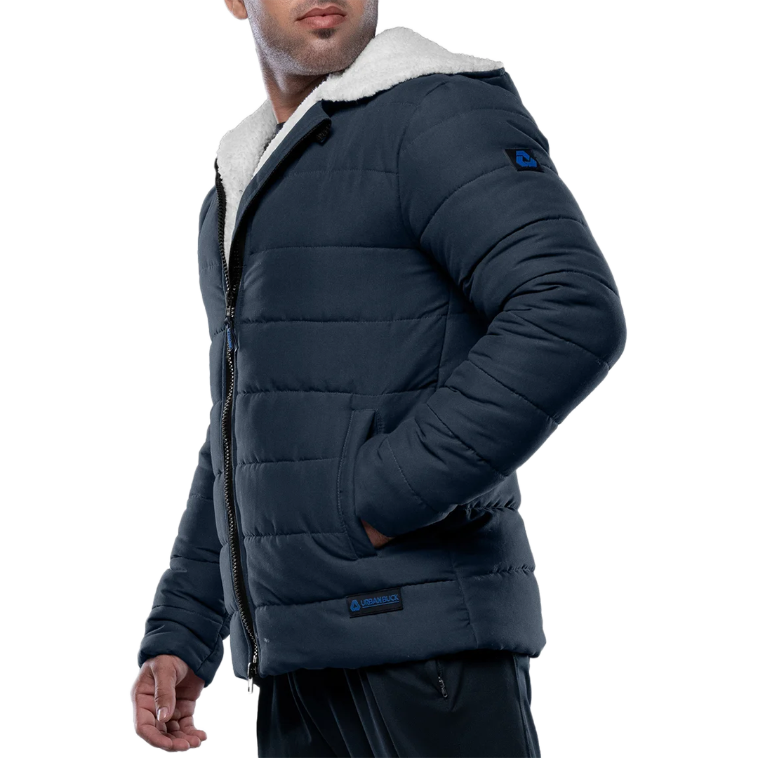 Brave the cold in style with this ultra-warm, eco-conscious puffer jacket. Designed for maximum comfort and sustainability, its striking blue hue and sherpa-lined interior make it a standout winter essential.