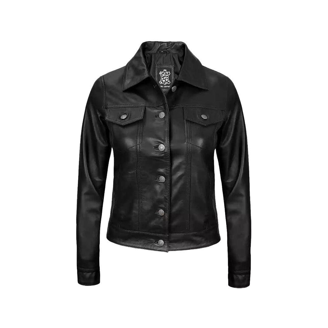 Bring laid-back edge to your daily style with the Women’s Black Trucker Leather Jacket. Designed with classic utility in mind and a modern twist in execution, this jacket is your go-to staple for all seasons.