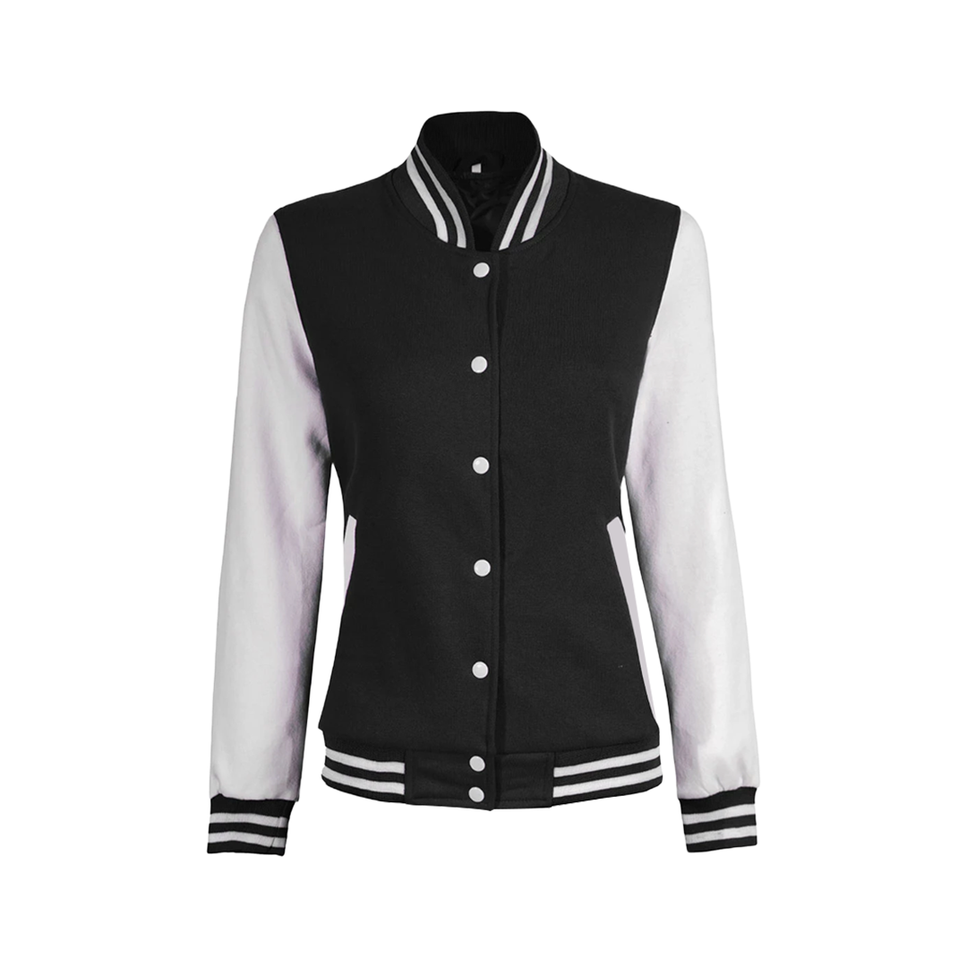 Step up your style game with our Women's Black & White Varsity Jacket, inspired by the timeless baseball look. This classic piece blends sporty flair with everyday chic, making it a versatile addition to your wardrobe. Designed with comfort, fit, and durability in mind, it’s perfect for casual outings, school, or weekend adventures.