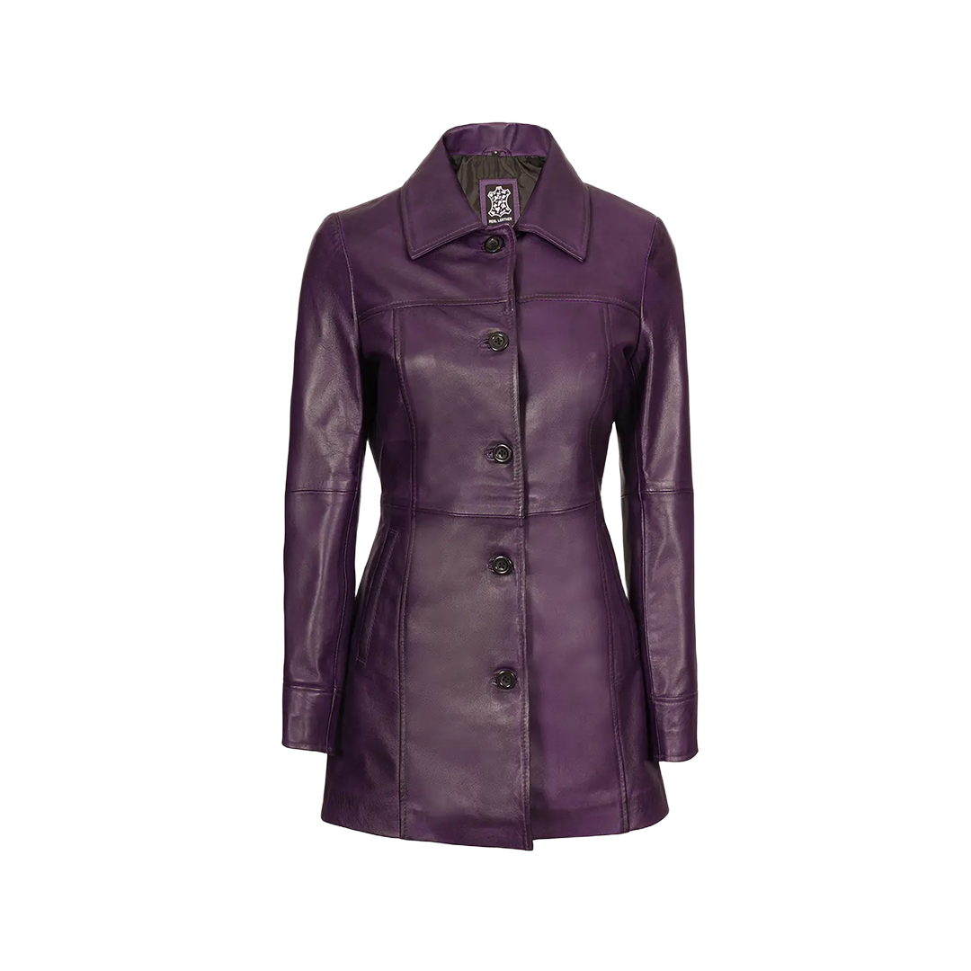 Whether paired with denim or dressed up with heels, the purple leather car coat adds flair to your cold-weather style. Built to last and designed to impress, it's a statement piece you’ll reach for year after year.