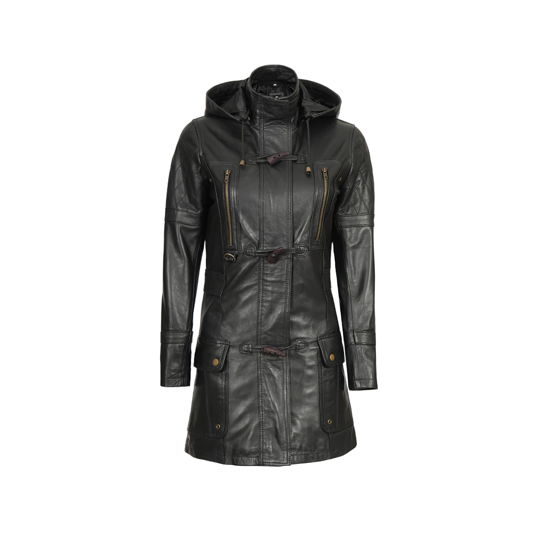 Designed for modern women who refuse to compromise on style or warmth, this Black Hooded 3/4 Length Leather Coat is a cold-weather essential. Whether you’re commuting, traveling, or simply enjoying winter strolls, this coat ensures you stay protected and polished.