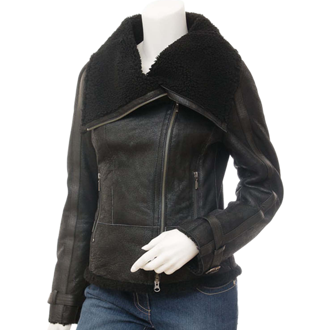 Effortlessly chic and winter-ready, this women’s black bomber sheepskin jacket pairs soft luxury with bold asymmetry for a standout cold-weather essential.