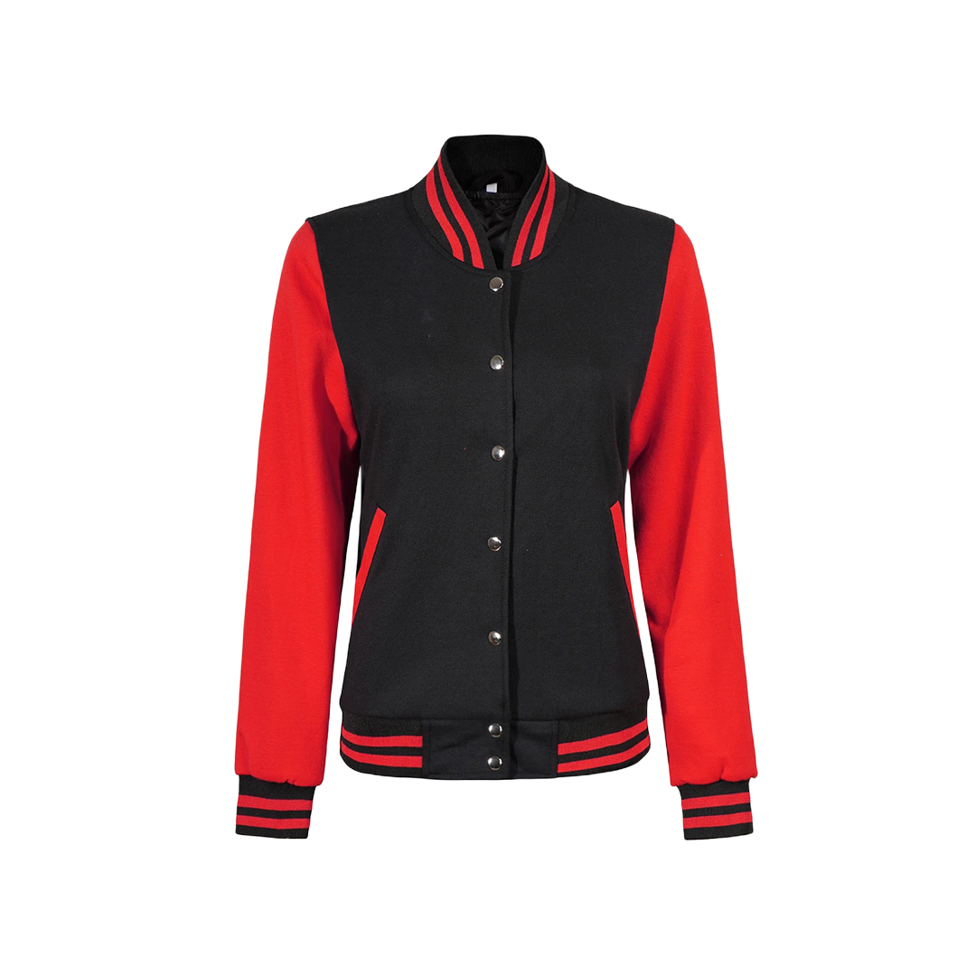 Elevate your wardrobe with the Women's Black and Red Varsity Jacket — a bold blend of classic sportswear and modern fashion. Designed from premium fleece and finished with striking red accents, this jacket brings together comfort, durability, and standout style. Whether you're hitting the stands or the streets, it’s a versatile outerwear choice.