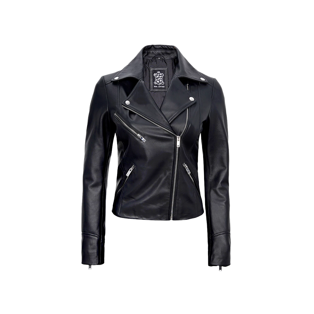 Unleash bold energy with this Black Asymmetrical Leather Motorcycle Jacket—a fearless blend of classic biker attitude and refined feminine detail. Designed for the modern woman who values both edge and elegance.