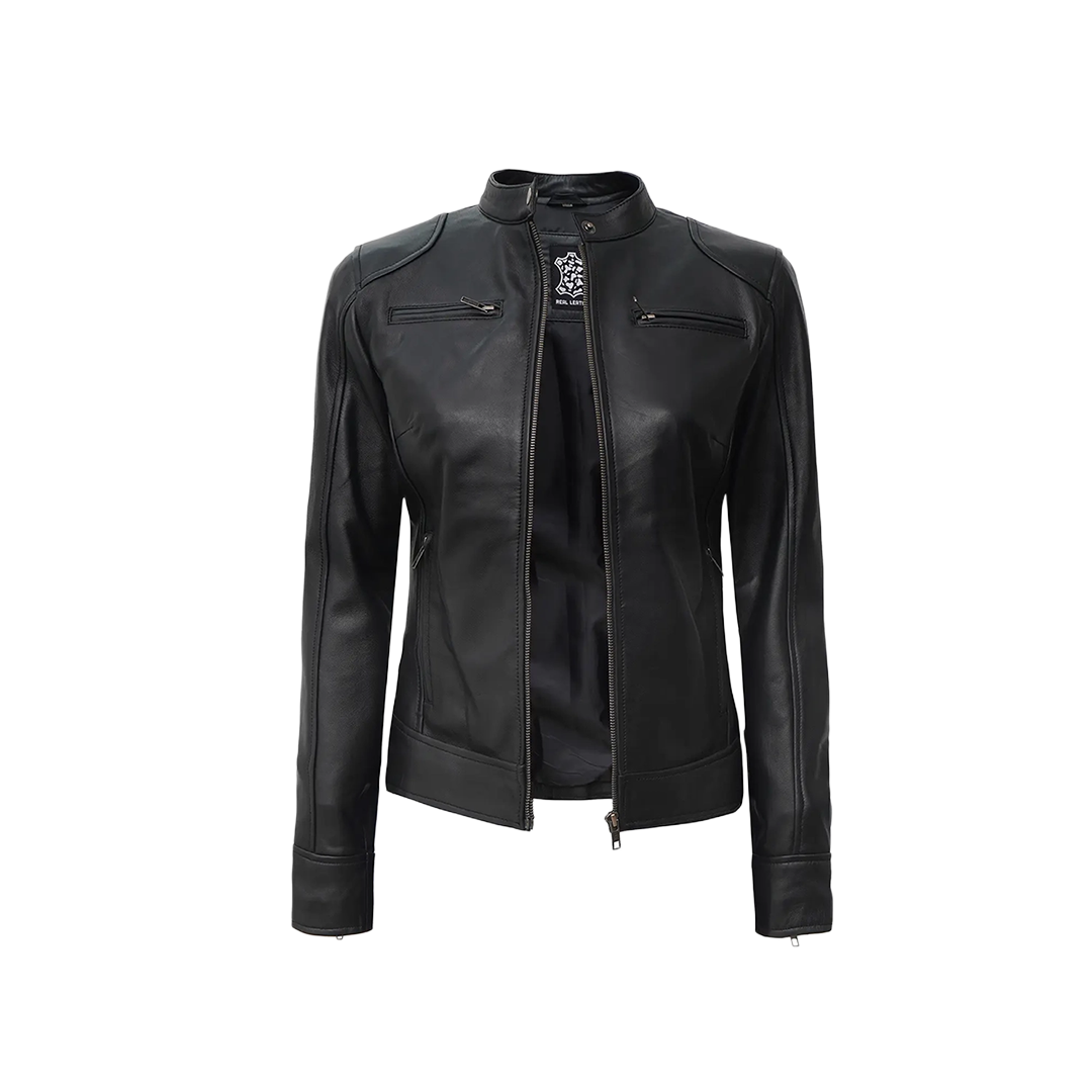 Strike the perfect balance between bold and beautiful with the Women’s Black Lambskin Leather Motorcycle Jacket. This sleek essential is tailored for women who want timeless biker flair with elevated comfort and style.