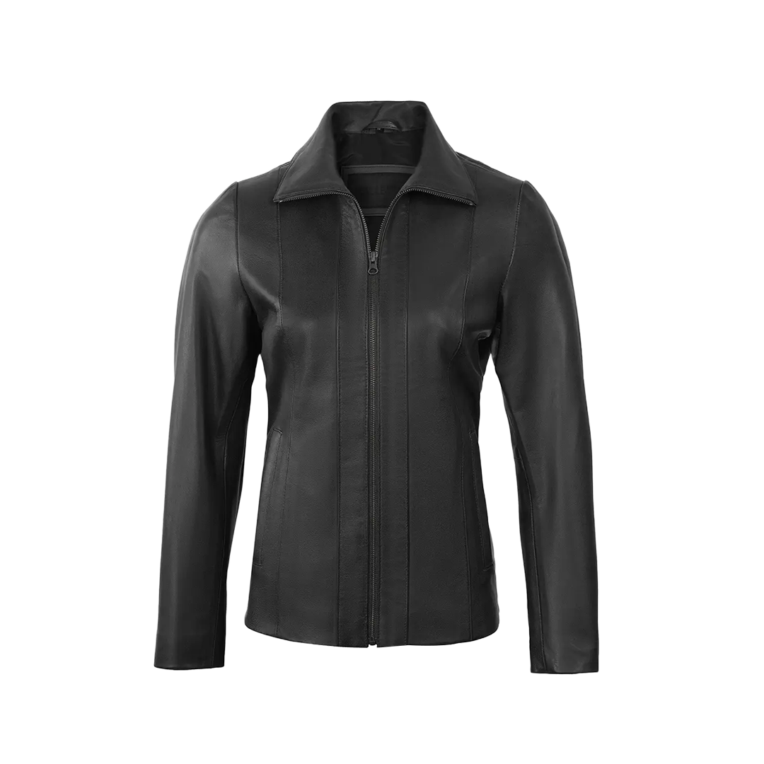Effortless style meets all-season functionality with this Women's Black Shirt Collar Harrington Leather Jacket. Designed for daily wear, its sleek silhouette adds just the right edge without overwhelming your outfit.