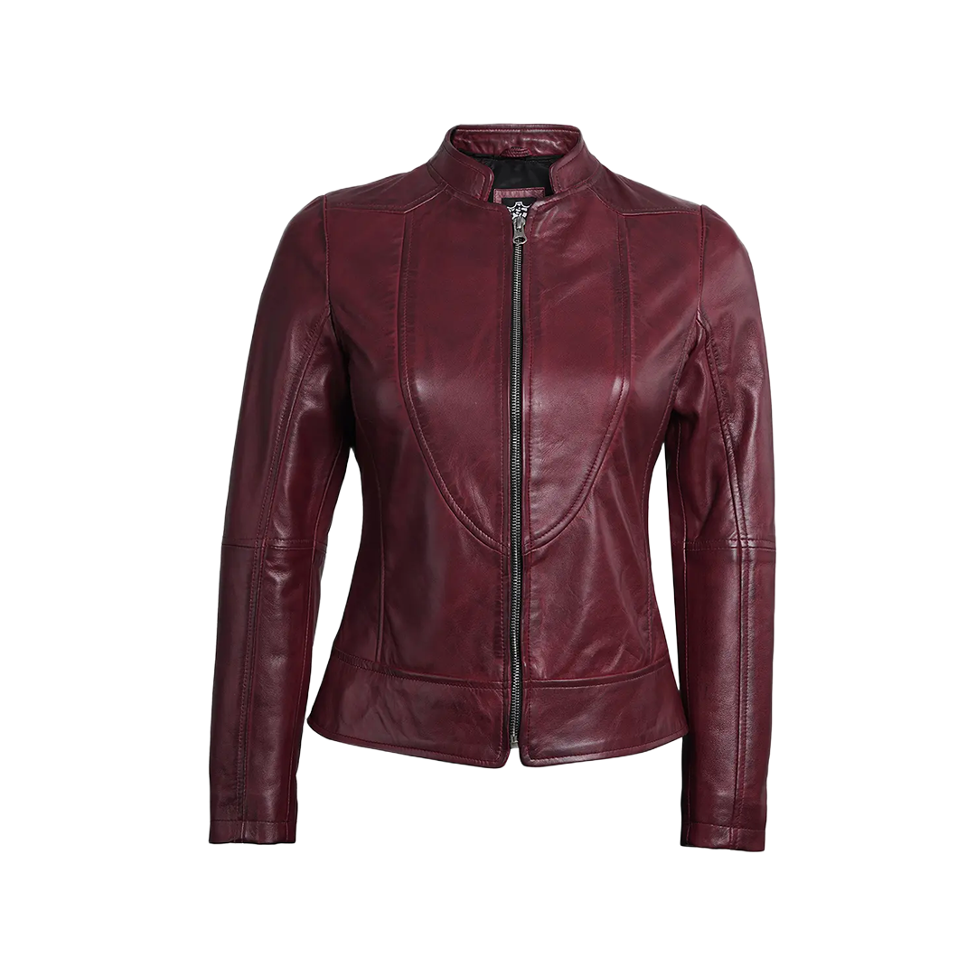 Refine your look with the Women’s Burgundy Café Racer Leather Jacket—a sleek, minimalist outerwear staple designed for the modern woman. Whether you're running errands or heading out for the evening, this jacket adds a touch of effortless polish to any outfit.