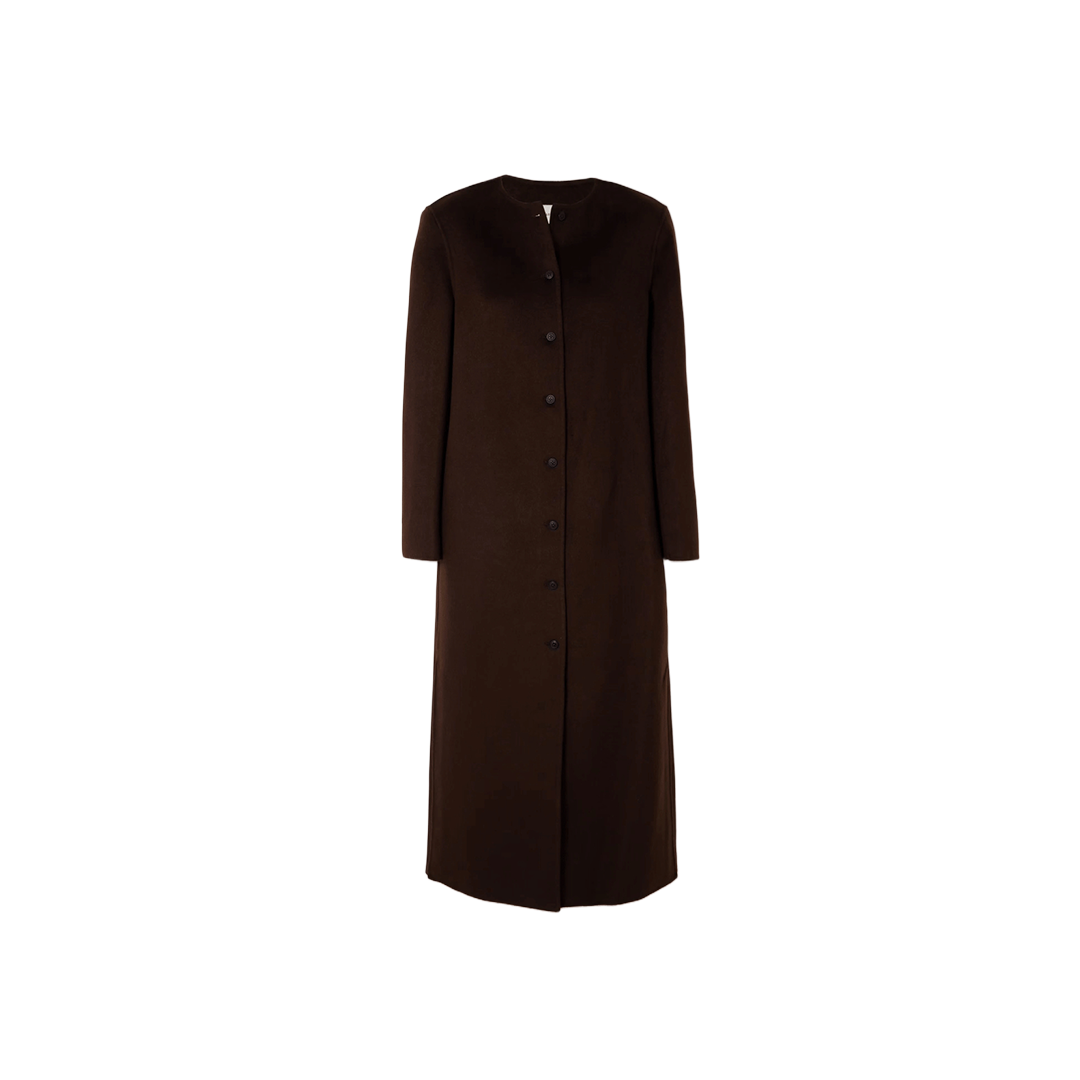 Make every cold day a stylish one—this chocolate brown wool coat is the ideal layering piece for a sophisticated winter wardrobe.