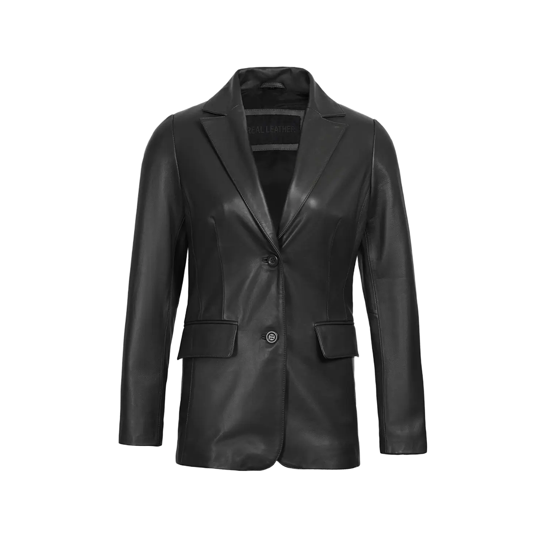 Add a timeless touch to your wardrobe with the Women's Classic Black Leather Blazer — a sophisticated staple that blends clean tailoring with everyday wearability. Crafted from 100% real lambskin leather, this piece offers both durability and a luxuriously soft feel.
