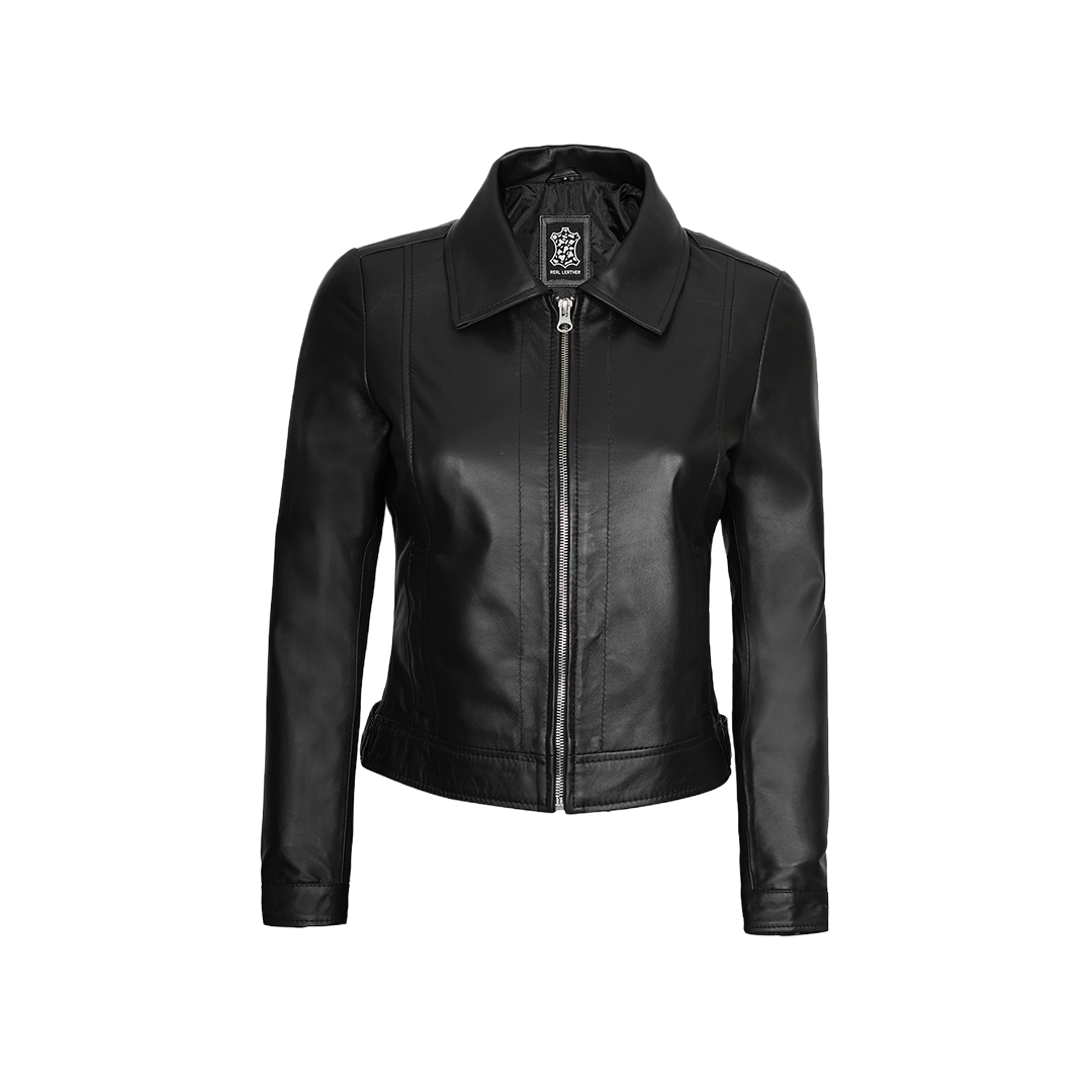 Designed for the woman who values both style and substance, the Women’s Harrington Style Black Leather Jacket brings together sharp tailoring and timeless appeal. It's a sleek, everyday essential that adds polish to any look.