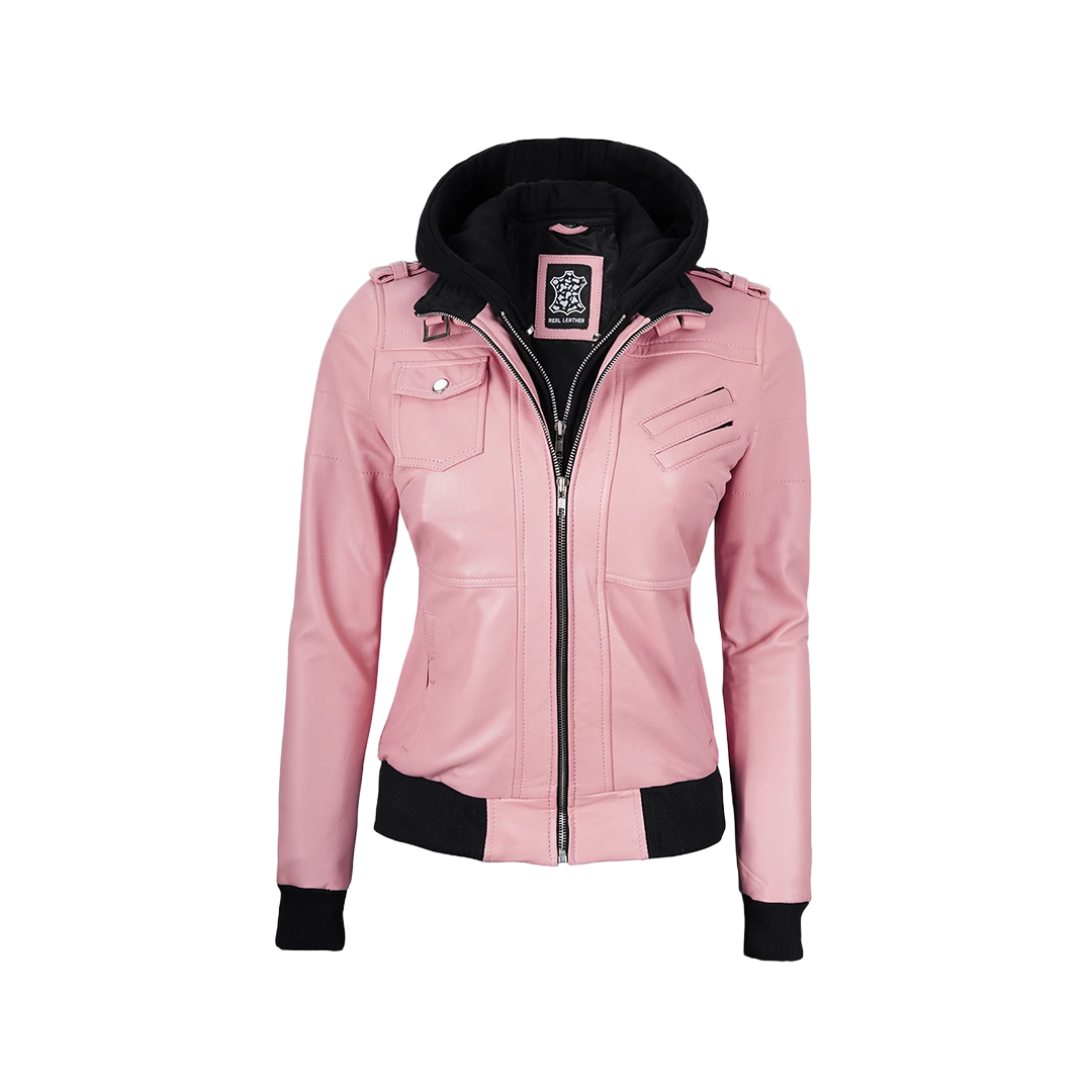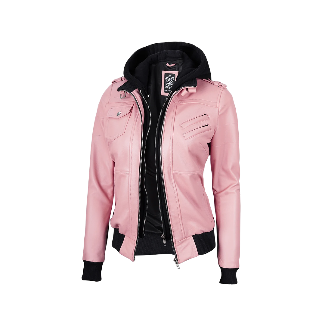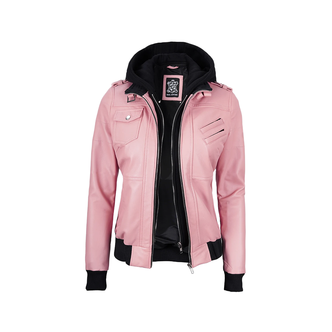 From daytime adventures to weekend getaways, this Pink Bomber Leather Jacket with Removable Hood adds a bold splash of color and confidence to your outerwear collection—without compromising comfort or function.
