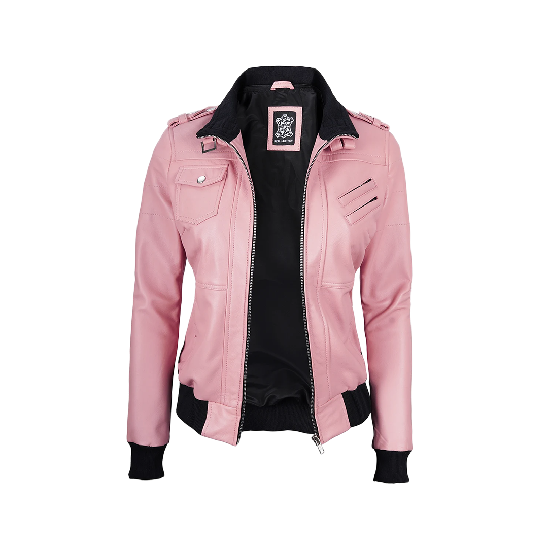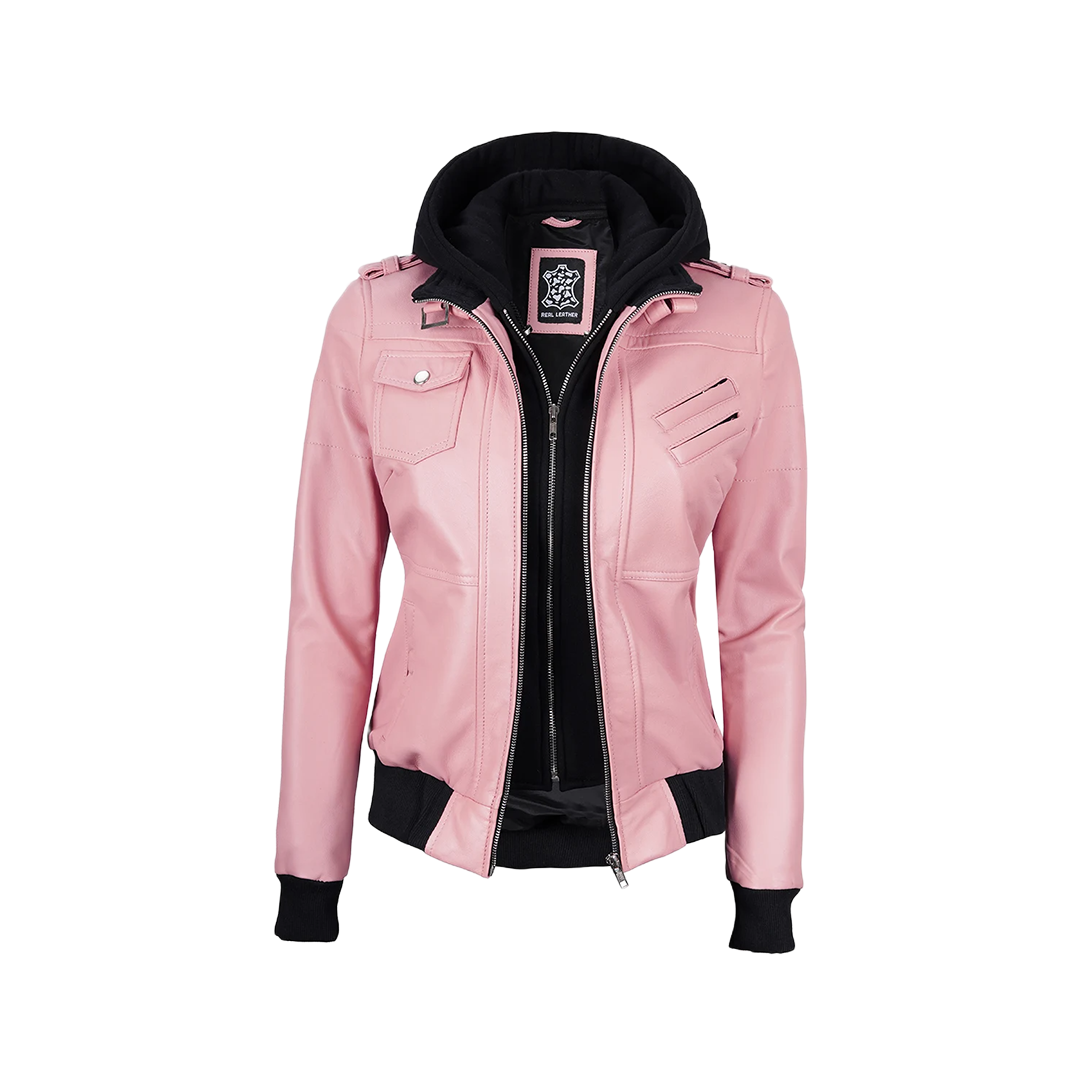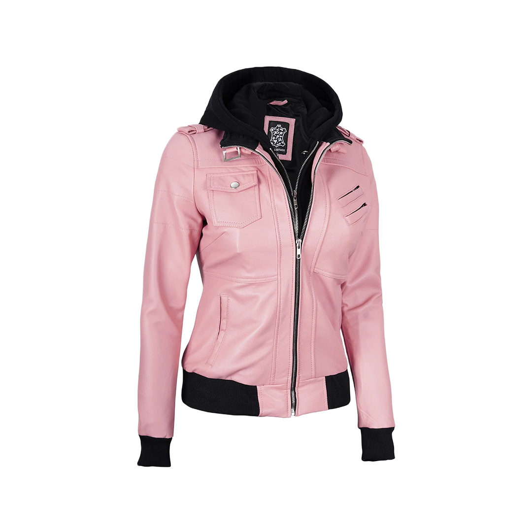 From daytime adventures to weekend getaways, this Pink Bomber Leather Jacket with Removable Hood adds a bold splash of color and confidence to your outerwear collection—without compromising comfort or function.