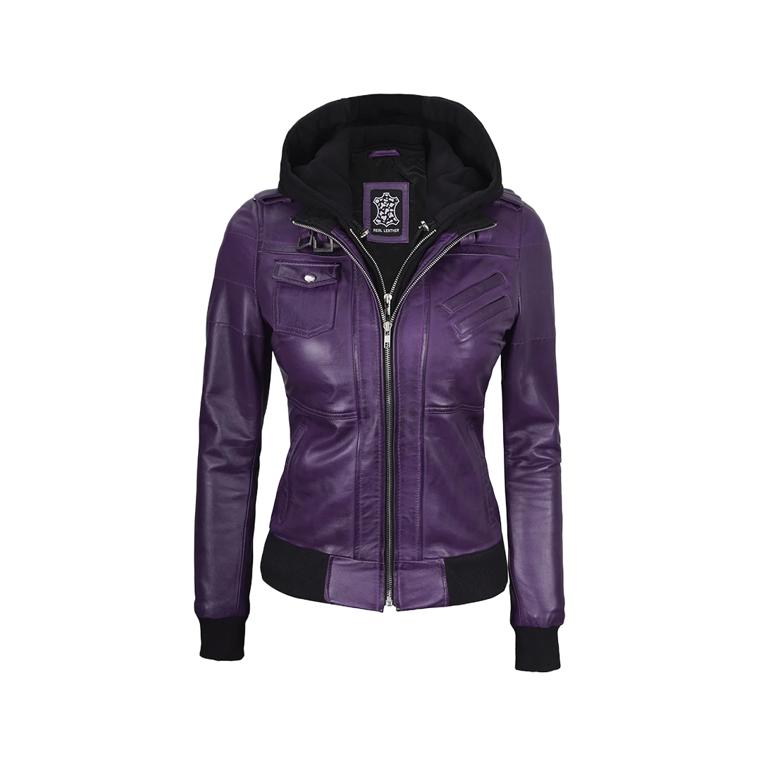 Whether layered over casual wear or dressed up for a night out, this purple leather jacket is an instant style enhancer. The removable hood offers two distinct looks, making it your go-to piece for changing seasons and evolving outfits.