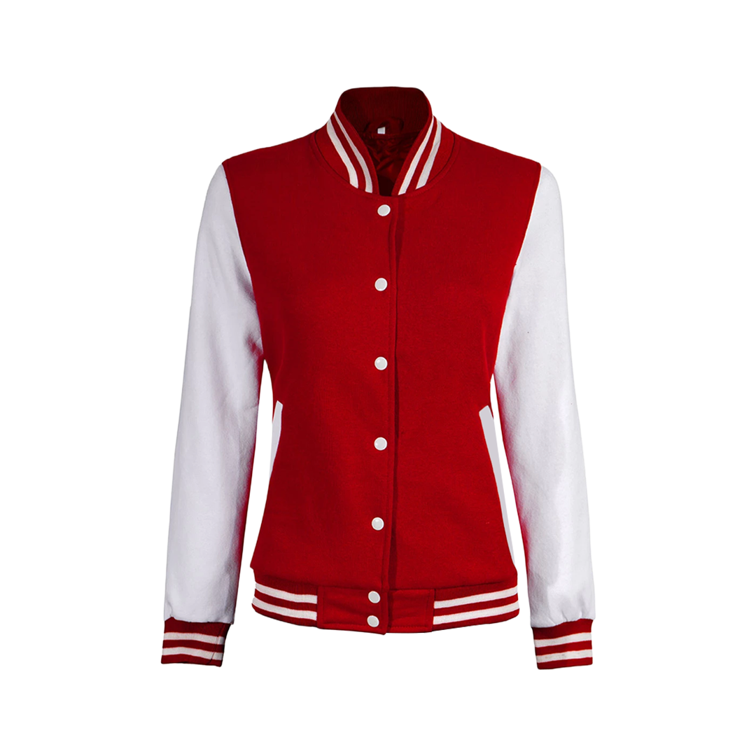 Elevate your style with our Women's Red and White Varsity Jacket, a timeless and stylish addition to your wardrobe. Crafted from high-quality materials, this jacket ensures both comfort and durability. Whether you're heading to a game or simply want to add a sporty touch to your outfit, this jacket is the perfect choice.