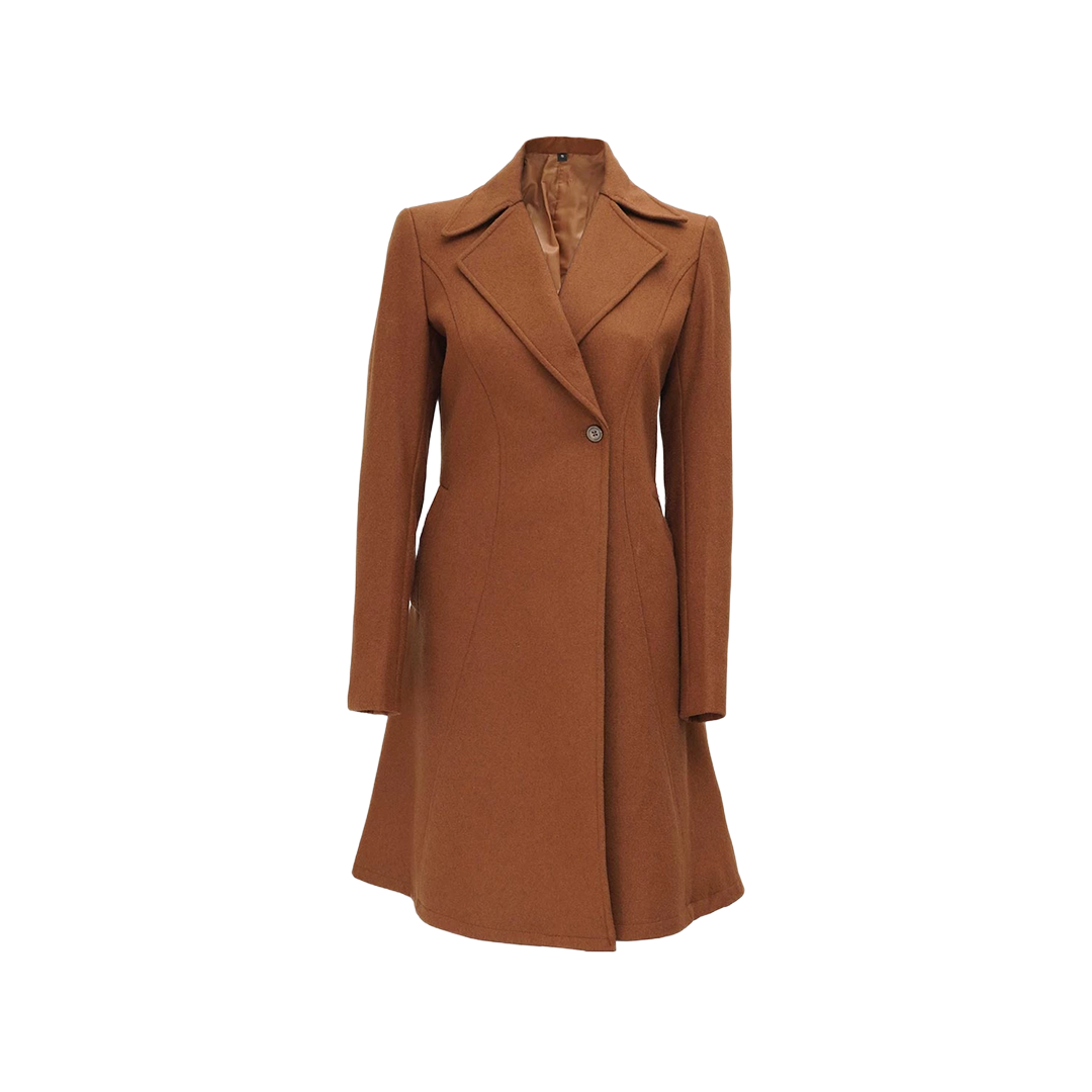 Add timeless charm to your winter wardrobe with this camel brown wool coat — a must-have for any woman who values both warmth and elegance.
