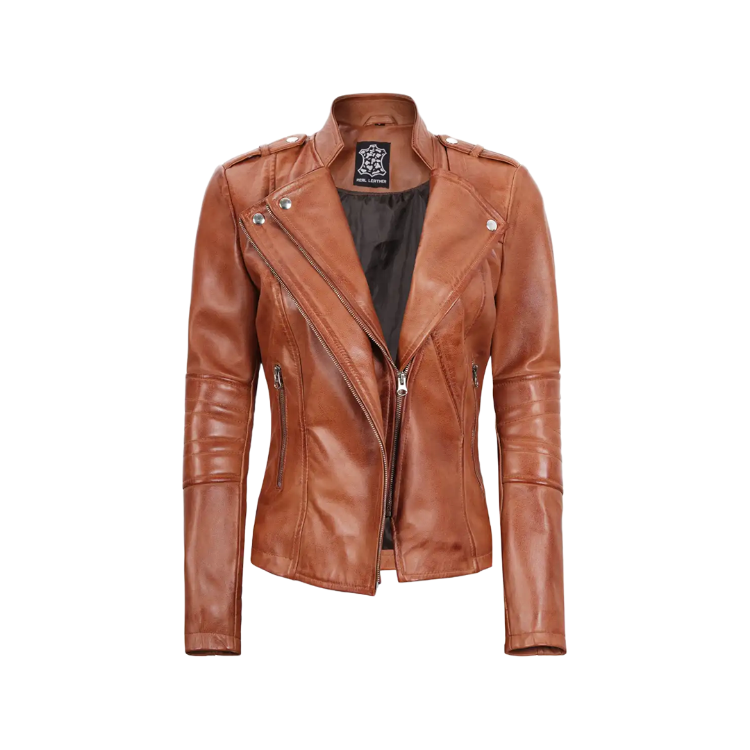 Ride with confidence — the Women's Tan Brown Leather Motorcycle Jacket is your go-to outerwear for adding depth, texture, and undeniable cool to any outfit.