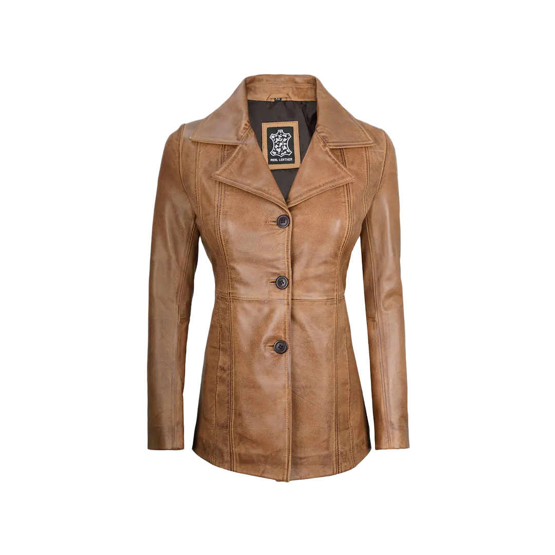Add a touch of modern polish and vintage charm to your outfit with this camel-toned leather blazer — a versatile layer made to last.