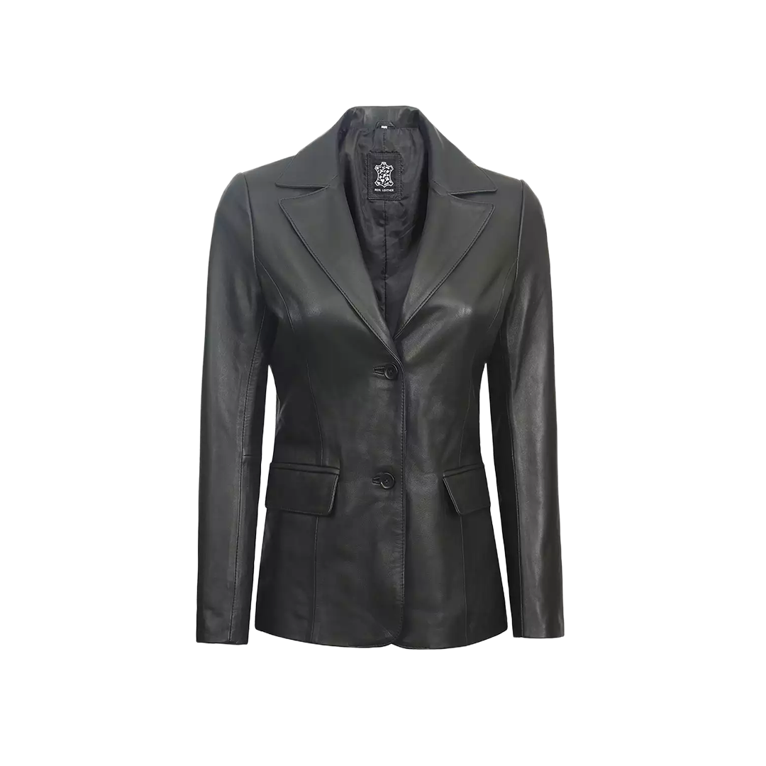 Step out with confidence and make a lasting impression wherever you go with this elegant and durable Women's Two Button Black Leather Blazer Jacket—designed to keep pace with your dynamic lifestyle.