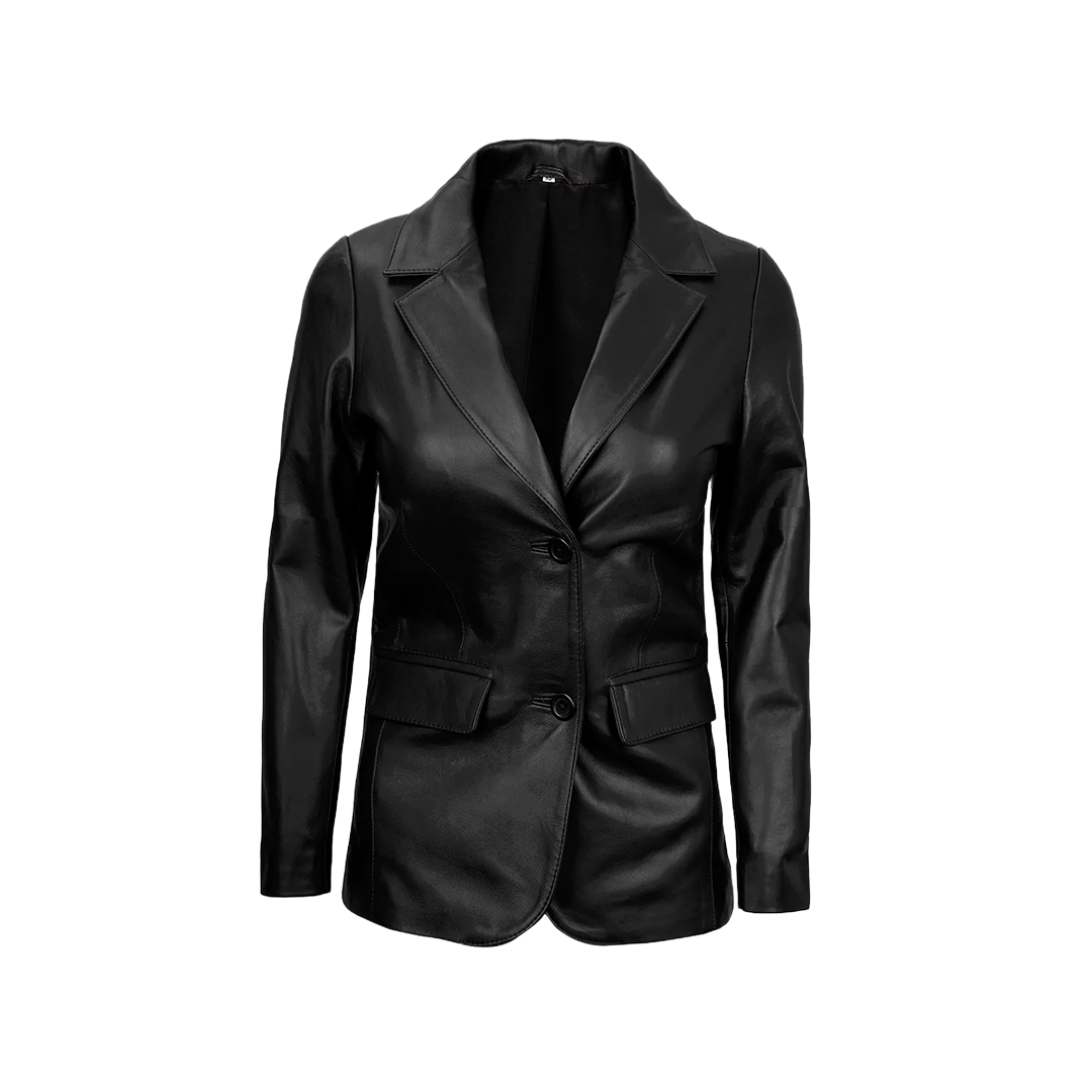 Sleek, structured, and effortlessly elegant — this Women's Two-Button Black Leather Blazer is designed to make a lasting impression. Made from 100% real lambskin leather, it offers a buttery-soft feel with a polished silhouette ideal for modern professionals and style-savvy women alike.